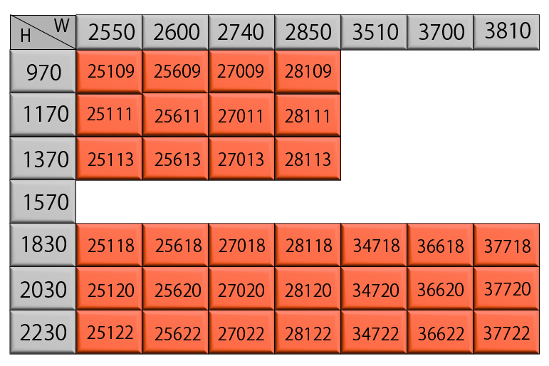 ご希望の寸法サイズをクリックしてください